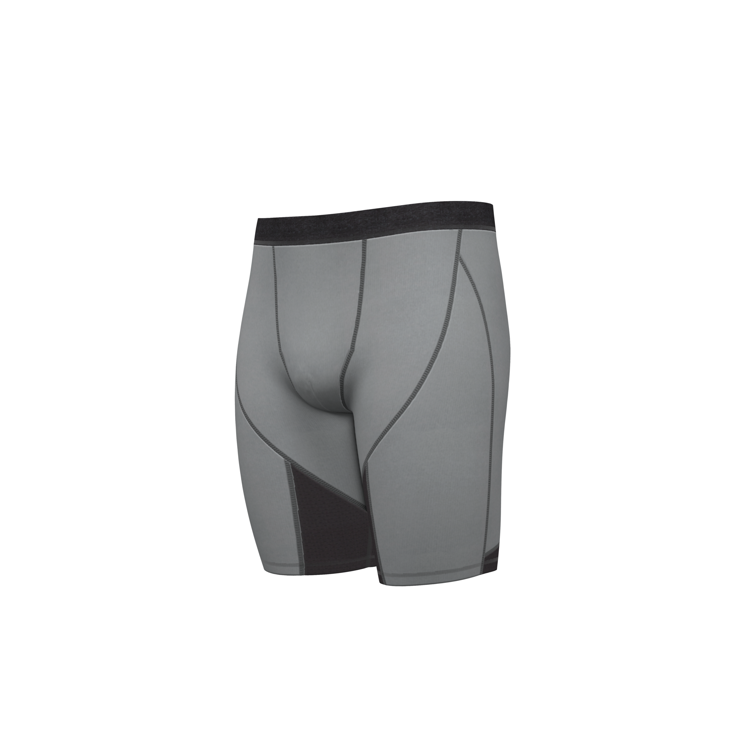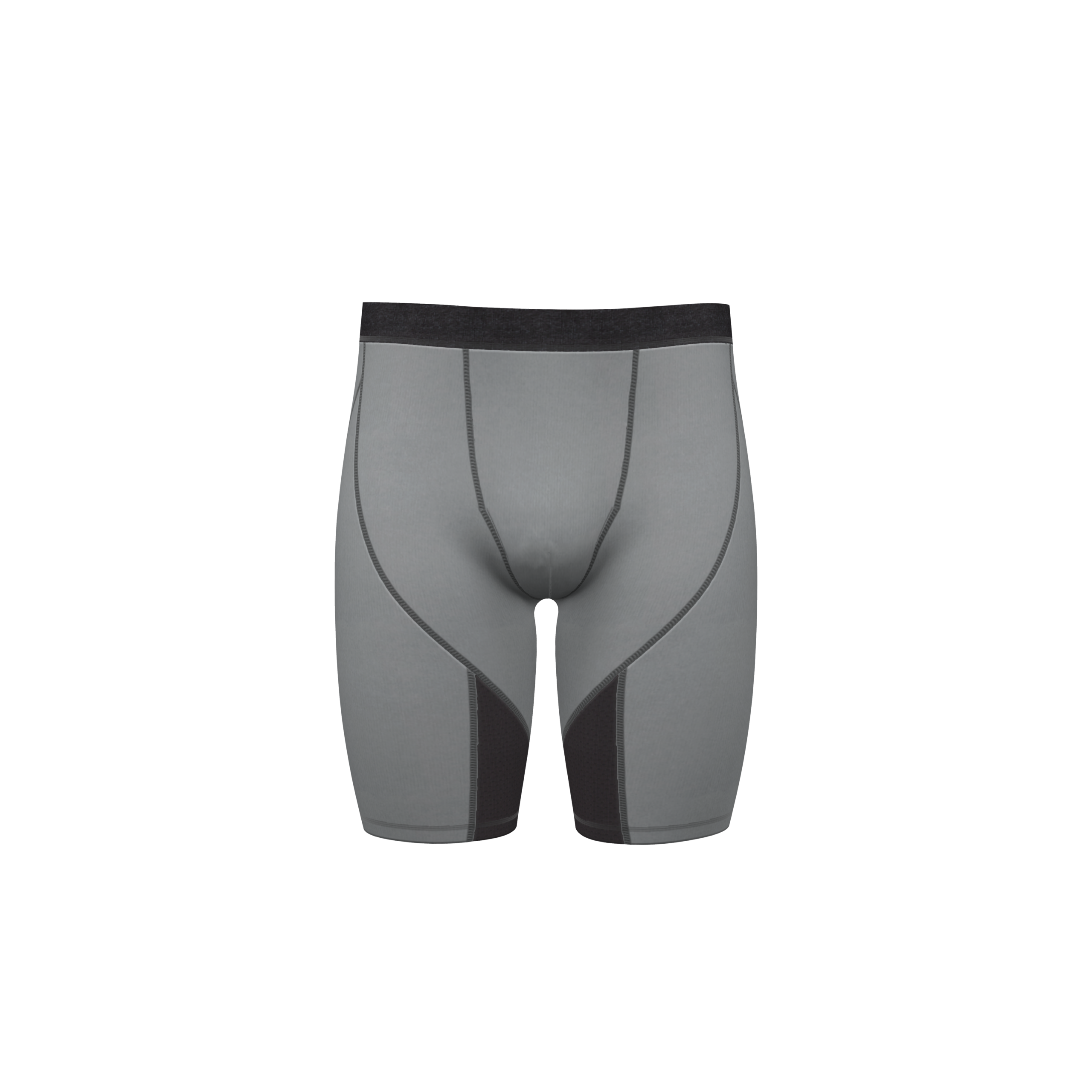 Men’s seamed compression short with inside mesh pouch. 9 inch inseam.