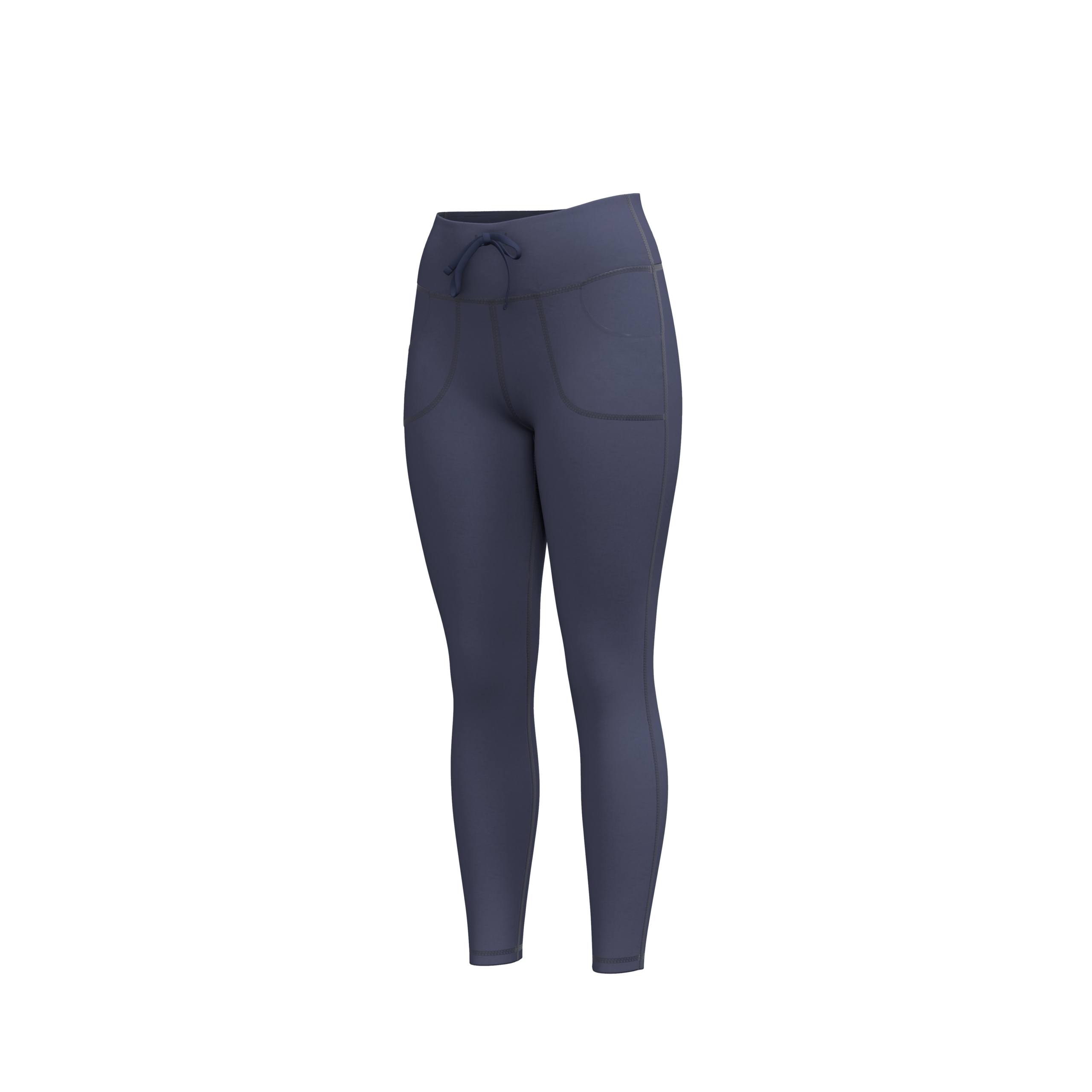 Women’s pocketed tie leggings featuring a drawcord and front pockets.