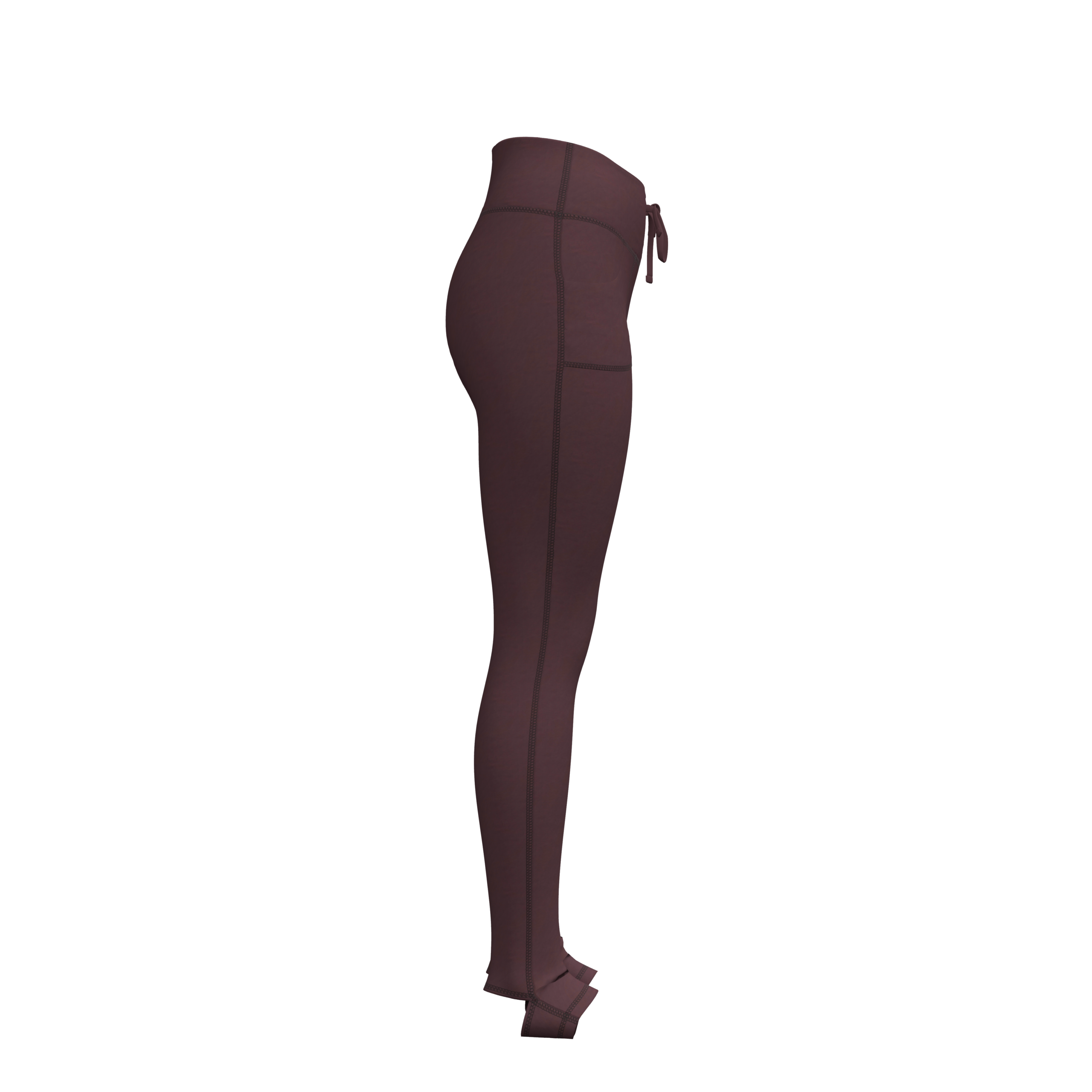 Women’s high waist pocketed stirrup legging, featuring front pockets and a waist tie for adjustability.