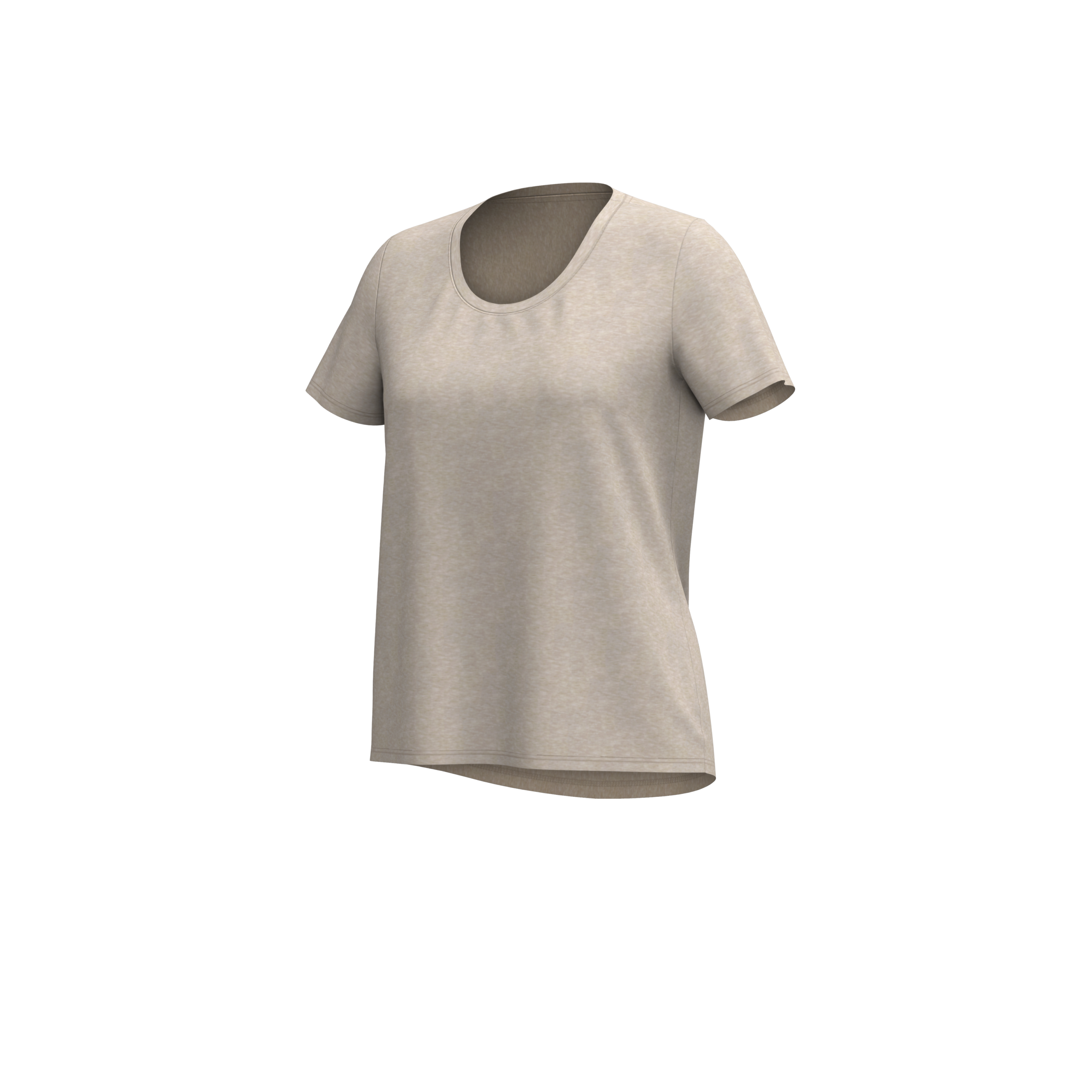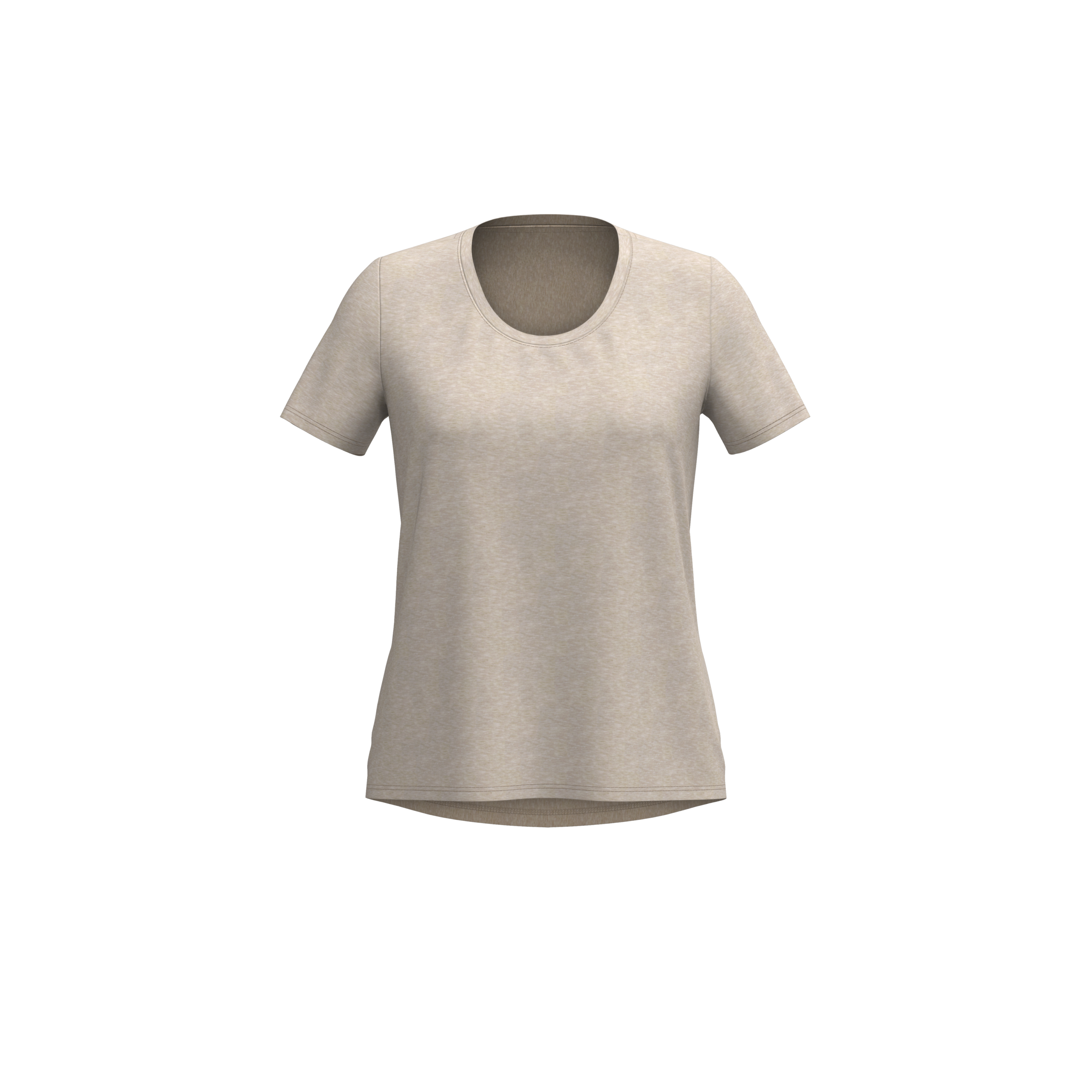 Women’s short sleeve scoop neck round hem tee.
