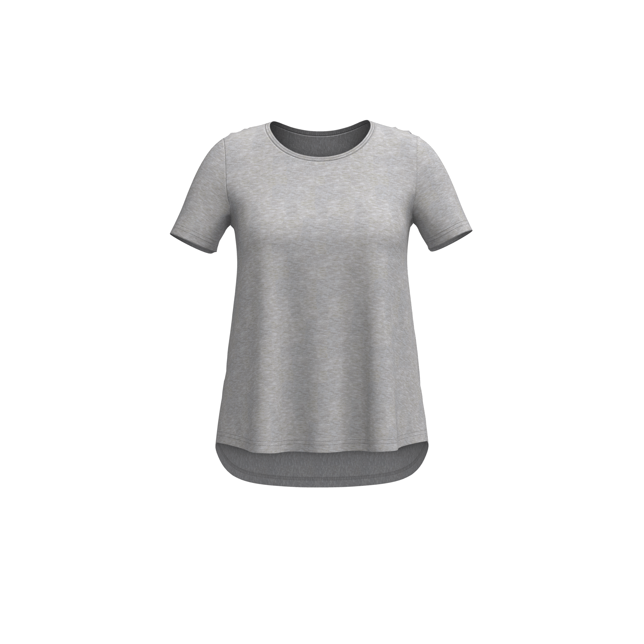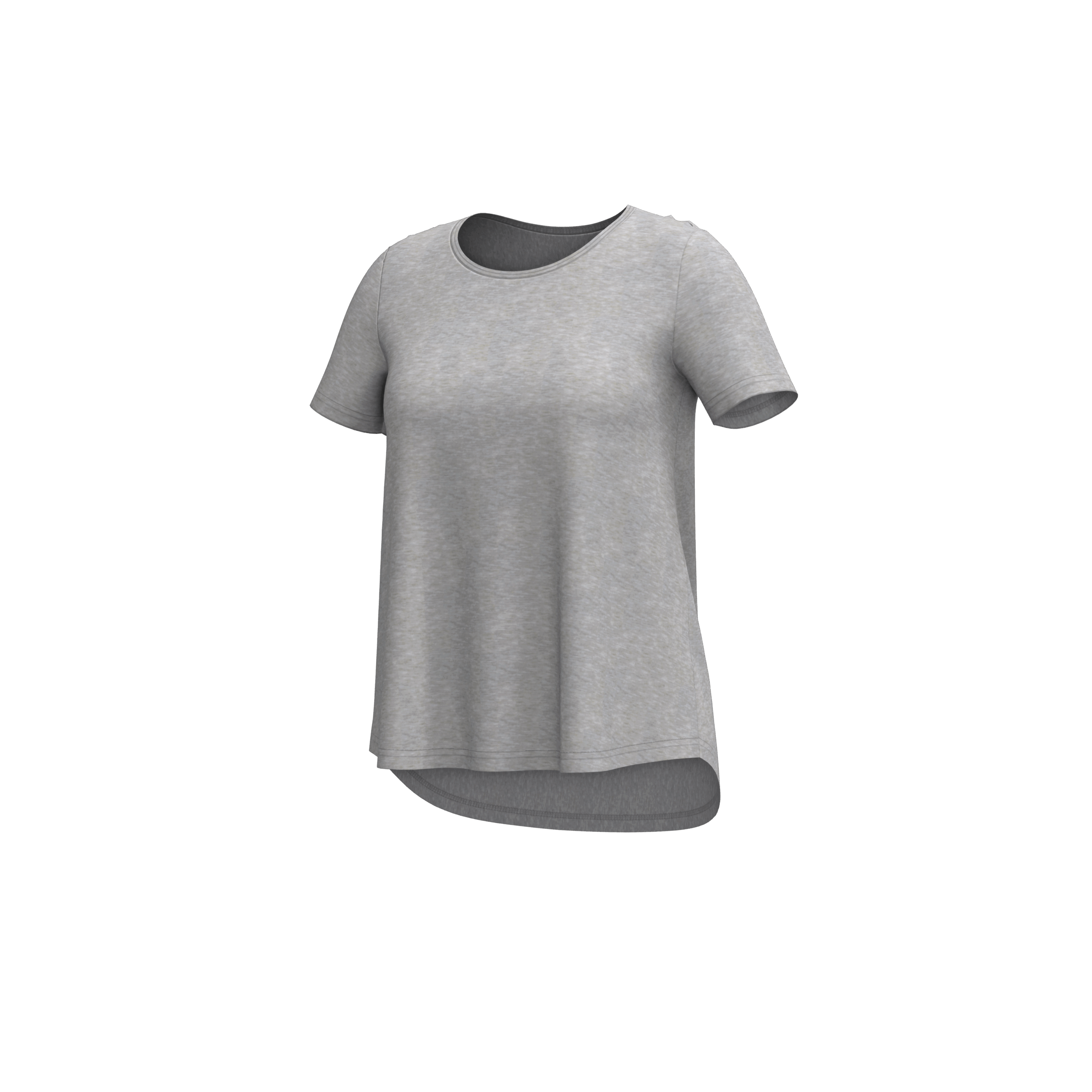 Relaxed fit short sleeve tee with rounded high/low hem.