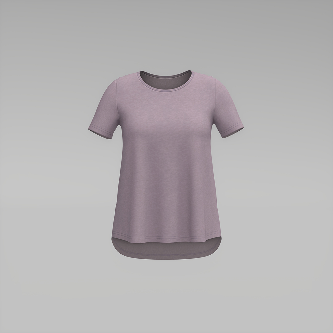 Relaxed fit short sleeve tee with rounded high/low hem.